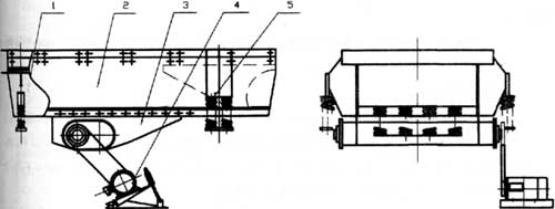 1、襯板 2、主機板 3、振動器 4、電機、電機架 5、減振彈簧