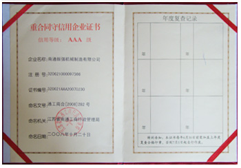 江蘇振強(qiáng)機(jī)械科技股份有限公司 >> 公司簡(jiǎn)介 >> 資質(zhì)證書(shū) >> 重合同守信用企業(yè)證書(shū)