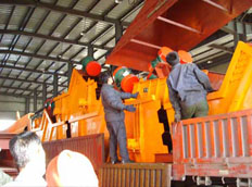 振強公司與哈沙克斯坦多家大中型企業簽訂了長期供貨協議,圖為振強公司正給貨車裝貨,把破碎機發往哈沙克斯坦。