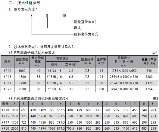 2. KR系列座式圓盤給料機正常按Y系列電動機供貨;