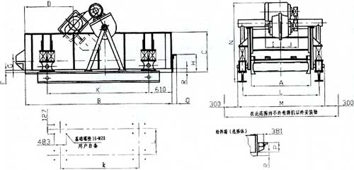單層ZKX型直線振動篩(礦用振動篩)篩安裝尺寸:
