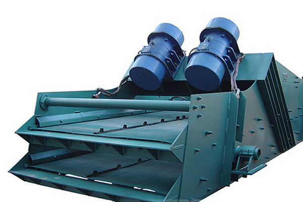 直線振動篩是屬于振動篩分機的一類,主要由篩箱、網架、篩網、振動電機、電機臺座、減振彈簧、支架組成。直線振動篩采用雙振動電機驅動,當兩臺振動電機做同步、反向旋轉時,其偏心塊所產生的激振力在平行于電機軸線的方向相互抵消,在垂直于電機軸的方向疊為一合力,因此篩機的運動軌跡為一直線。其兩電機軸相對篩面有一傾角,在激振力和物料自重力的合力作用下,物料在篩面上被拋起跳躍式向前作直線運動,從而達到對物料進行篩選和分級的目的。 可用于流水線中實現自動化作業。